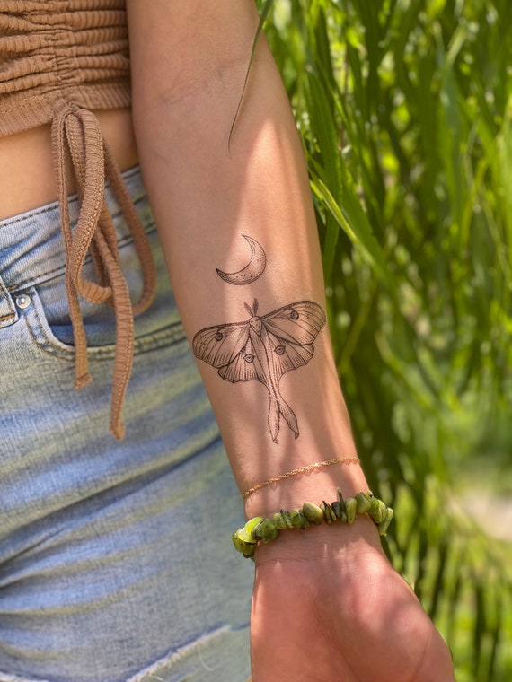 Luna Moth Temporares Tattoo Black Line Tattoo Geflugeltes Etsy De